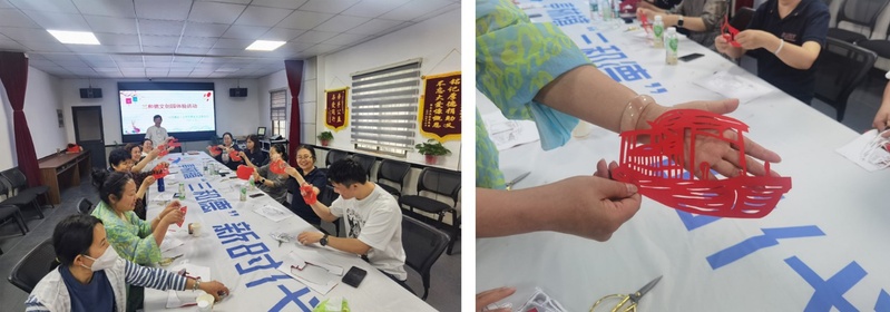 在讲解员的带领下,参加活动的教职工走进历史,看到了良渚文化、夏商周文化、及唐宋文化在亭林镇的挖掘和保护;亲身体会了撰写楷书字典的不易,也为很多文本和建筑在时间长廊中不复存在而惋惜。同时,大家还了解了当地手工业——黑陶和筅帚的制作工艺和传承。随后来到由粮仓改建的、拥有一百二十年历史品牌的“三和德”文创园,大家观看了当地小食的制作,并有幸亲手体验。最后,在当地剪纸大师的带领下,学习了有趣的剪纸技艺。