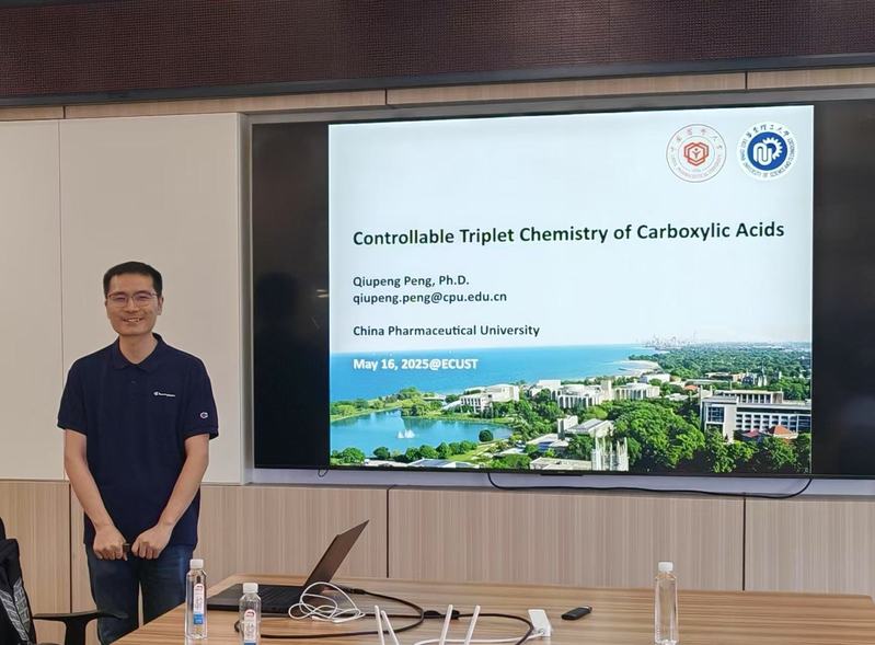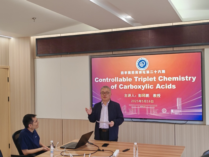 5月16日下午,yl34511线路中心第二十六期“药苑讲坛”在实验十八楼418会议室举行,本期讲坛邀请到了公司员工、中国药科大学彭邱鹏教授,为师生们带来了一场题为《Controllable Triplet Chemistry of Carboxylic Acids》的学术报告。报告会由yl34511线路中心副经理马磊主持,制药工程系副主任郑军等学院相关研究领域的师生参加。